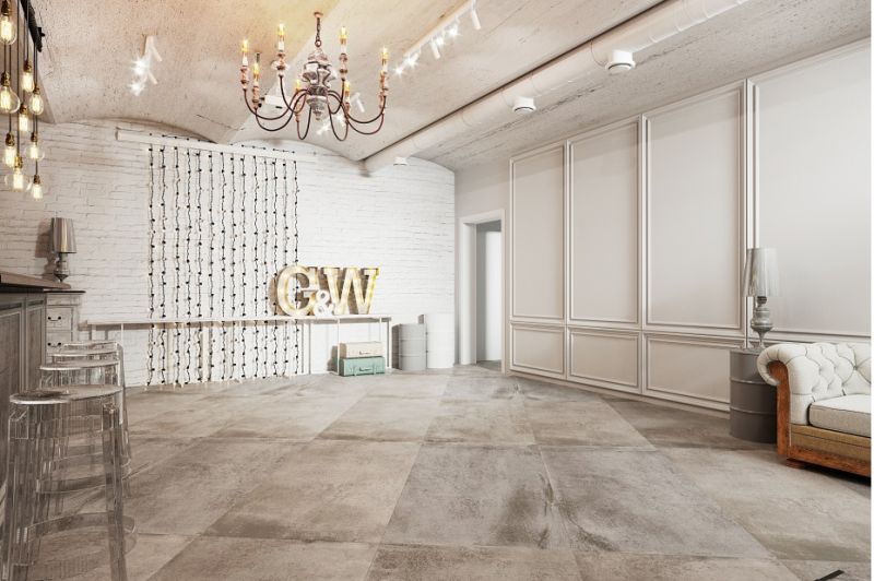 Просторный зал (90 м²) – зонируется под банкет, лаундж и танцпол.