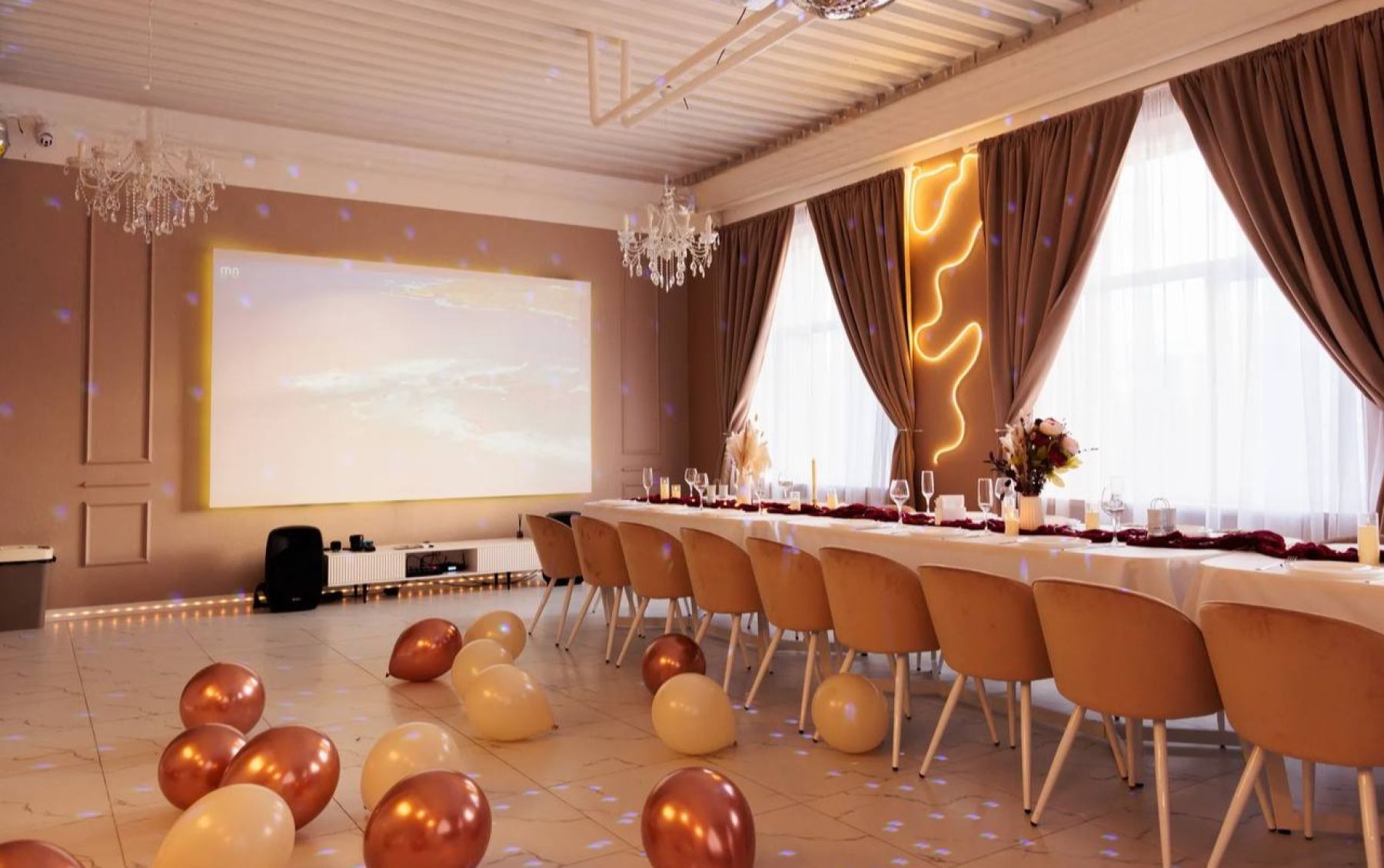 ▪ Фотозона с неоном и мебелью.