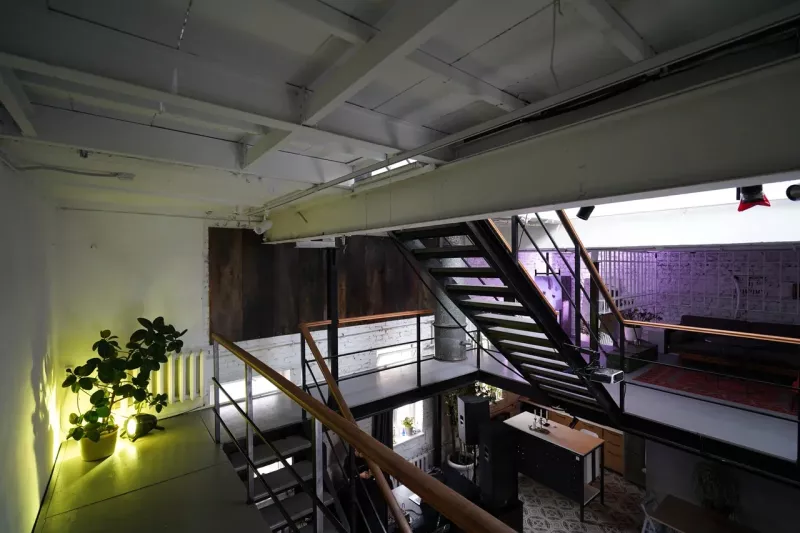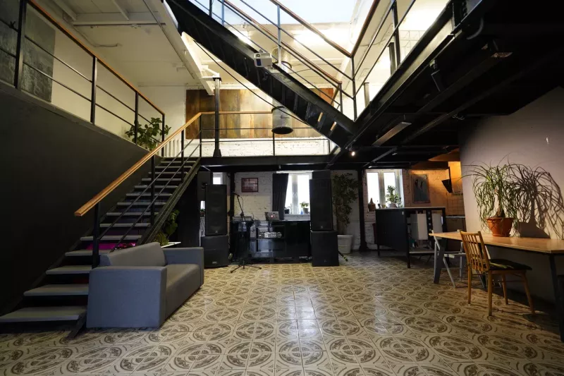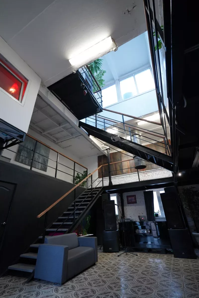 Барная и кухня, диджей-пульт, свободное пространство для гостей, санузел и гардероб. Здесь проходят вечеринки, презентации и живые выступления Место, где рождается атмосфера и звучит музыка.