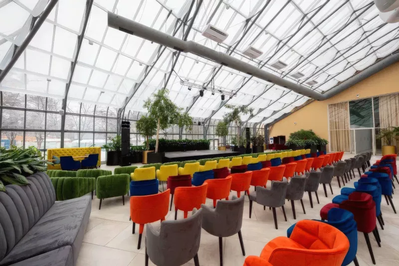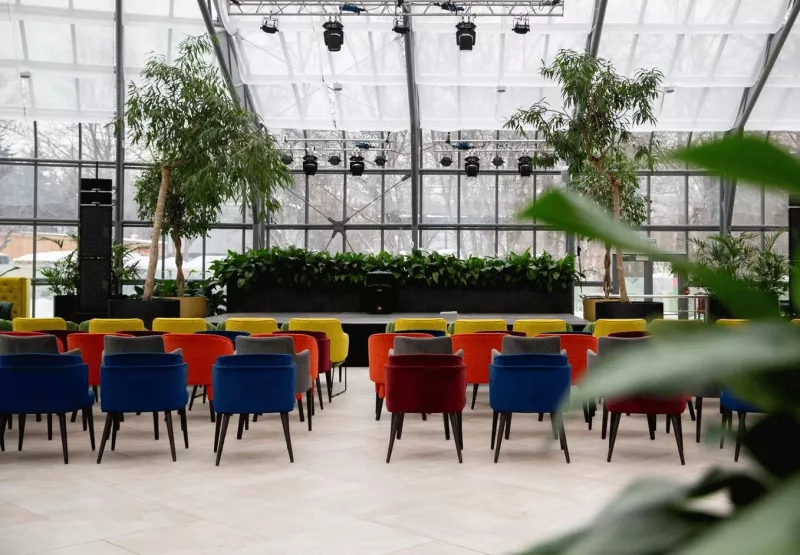 Обновленное пространство в составе выставочного центра Азербайджанской Республики, расположенное в 10 минутах ходьбы от главного входа на ВДНХ. Атмосферное пространство, напоминающее райский сад, окружено живыми растениями и наполнено мягким светом.