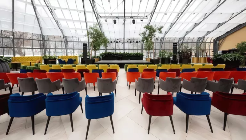 Оранжерея имеет современное техническое оснащение: сцена, LED экран, система звукоусиления, профессиональное освещение, кресла для спикеров и стулья для гостей. Павильон является объектом культурного наследия федерального значения.
