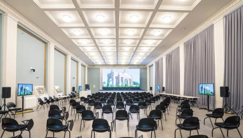 Большое светлое пространство с высокими потолками в легендарном павильоне «Космонавтика и авиация» на ВДНХ. Здесь история встречается с технологиями: архитектура зала выполненная в стиле ампир, мощное мультимедийное оснащение и атмосфера вдохновения делают каждое событие по-настоящему масштабным.