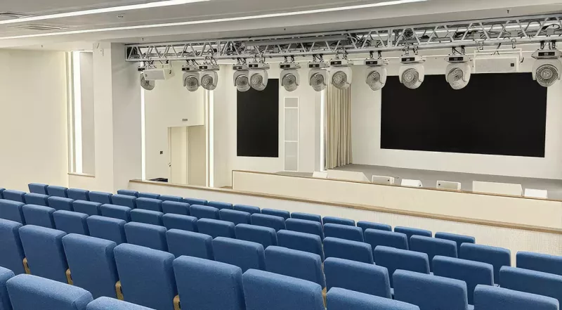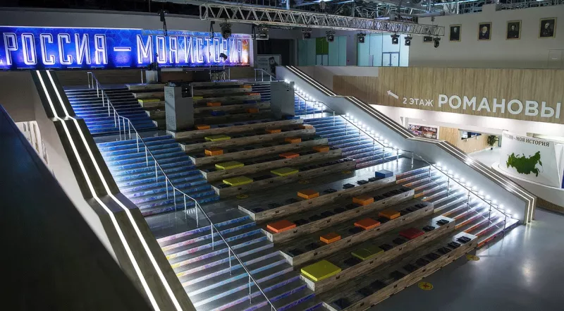 Пространство созданное для масштабных форумов, выставок, фестивалей и культурных событий. Пространство сочетает технологичность и атмосферу исторического наследия. Интерьеры павильона оформлены в лаконичном стиле.