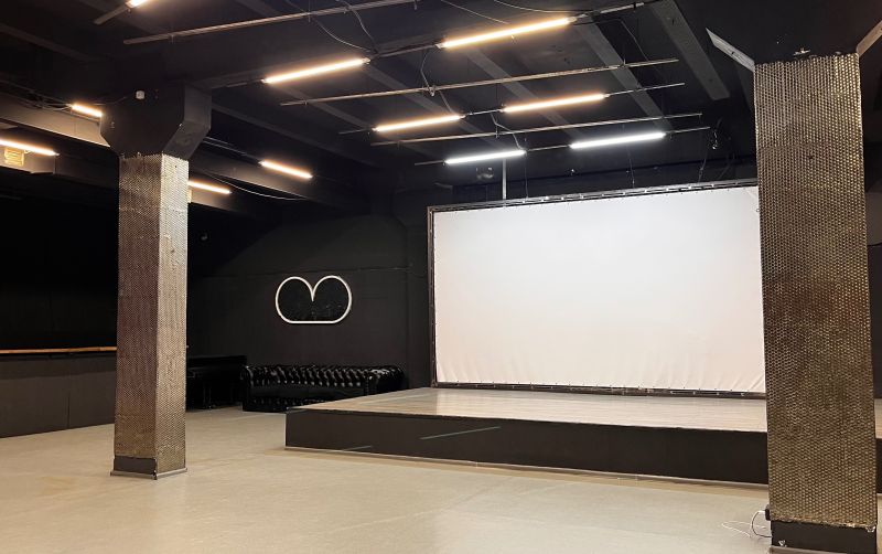 * просторная сцена со световым и звуковым оборудованием;