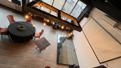 В лофте есть удобная зона отдыха для гостей, световое и звуковое оборудование для создания нужной атмосферы, а также пространство для танцев. Отличное место для празднования мальчишников, корпоративов или креативных вечеров с энергичной программой.