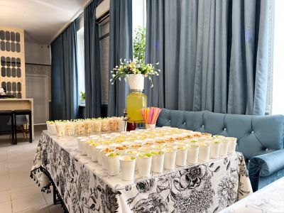 Банкетный зал адаптируется под разные форматы — от камерных посиделок по интересам до банкетов, фуршетов, корпоративов и шумных гендер-пати. Мягкие диваны и кресла, большие столы и трендовые стулья создают обстановку, а благодаря продумонной планировке барная и банкетная зоны удачно соседствует с просторным танцполом.