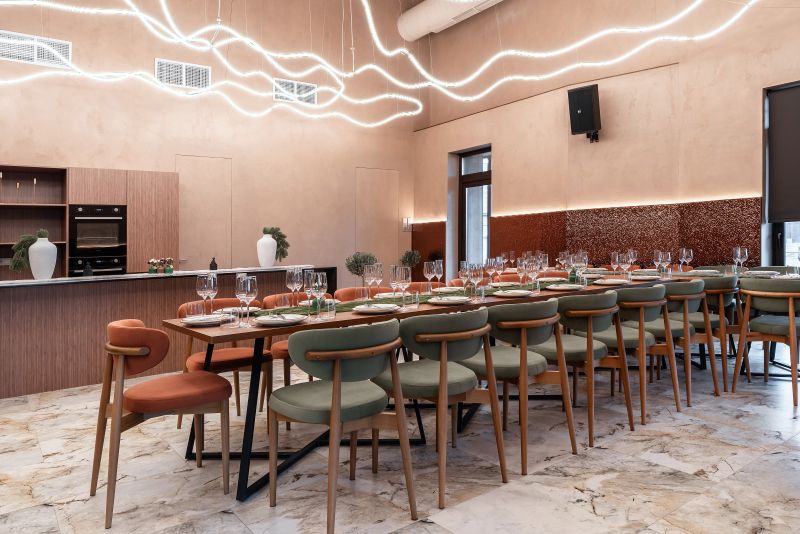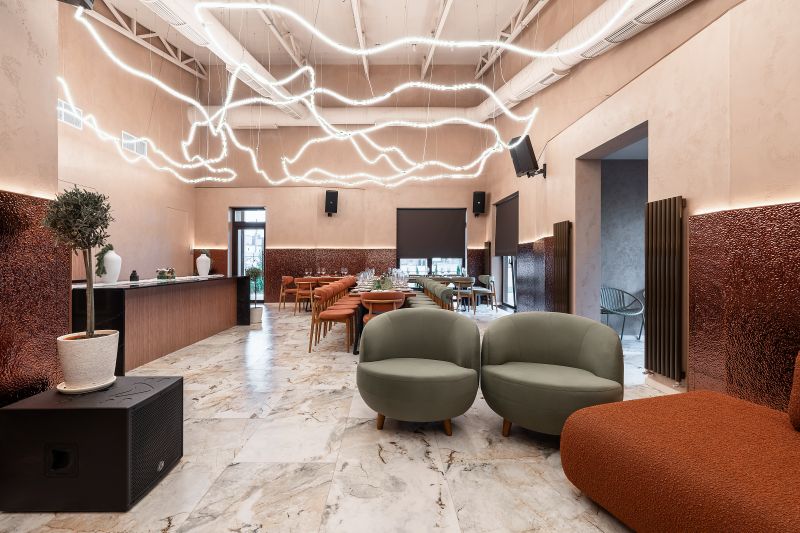 Просторный интерьер нашего лофта выполнен в оригинальном современном стиле. Высокие потолки, панорамные окна и продуманное освещение создают неповторимую атмосферу свободы и вдохновения, идеально подходящую как для камерных встреч, так и масштабных мероприятий.