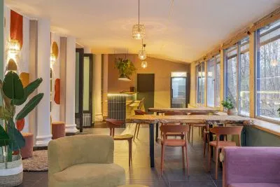 Широкие деревянные столы, мягкое освещение — обстановка располагает к творчеству.