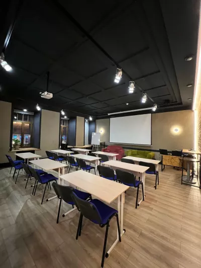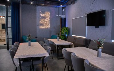 В лофте есть всё необходимое для проведения мероприятий: удобная мебель, современное оборудование для аудио- и видеоконференций, а также технические возможности для организации концертов и других музыкальных мероприятий.