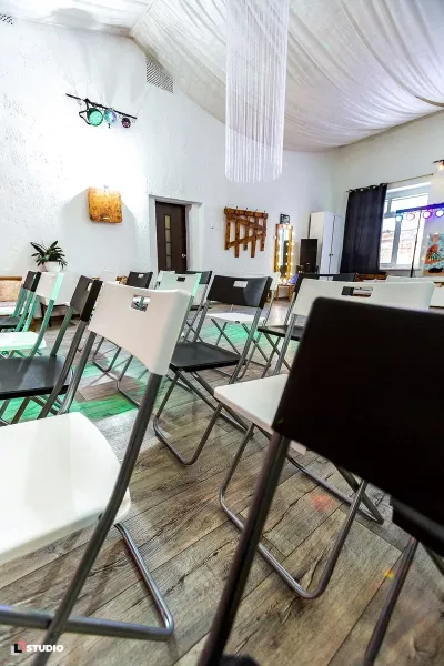 Просторный и светлый лофт с высокими потолками и большими окнами создаёт атмосферу свободы и творчества. Открытая планировка позволяет легко адаптировать пространство под любые нужды и создаёт комфортные условия для всех участников мероприятия.
