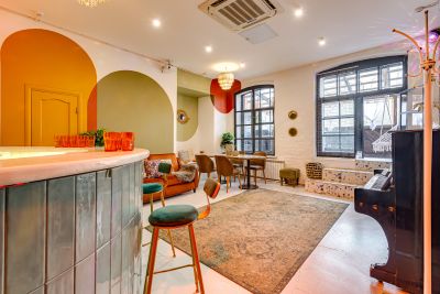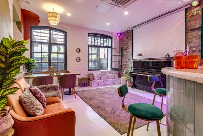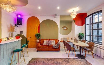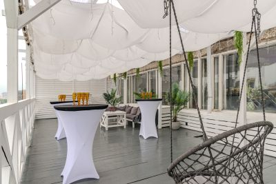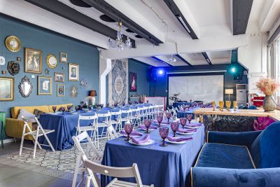 Стильный лофт с крытой ВЕРАНДОЙ на первом этаже в 4х минутах ходьбы от метро Электрозаводская. Закрытое пространство площадью 100 м² и открытая веранда площадью 35 м² для 40 гостей. Полное техническое оснащение, тех. час и КАРАОКЕ включено в стоимость!