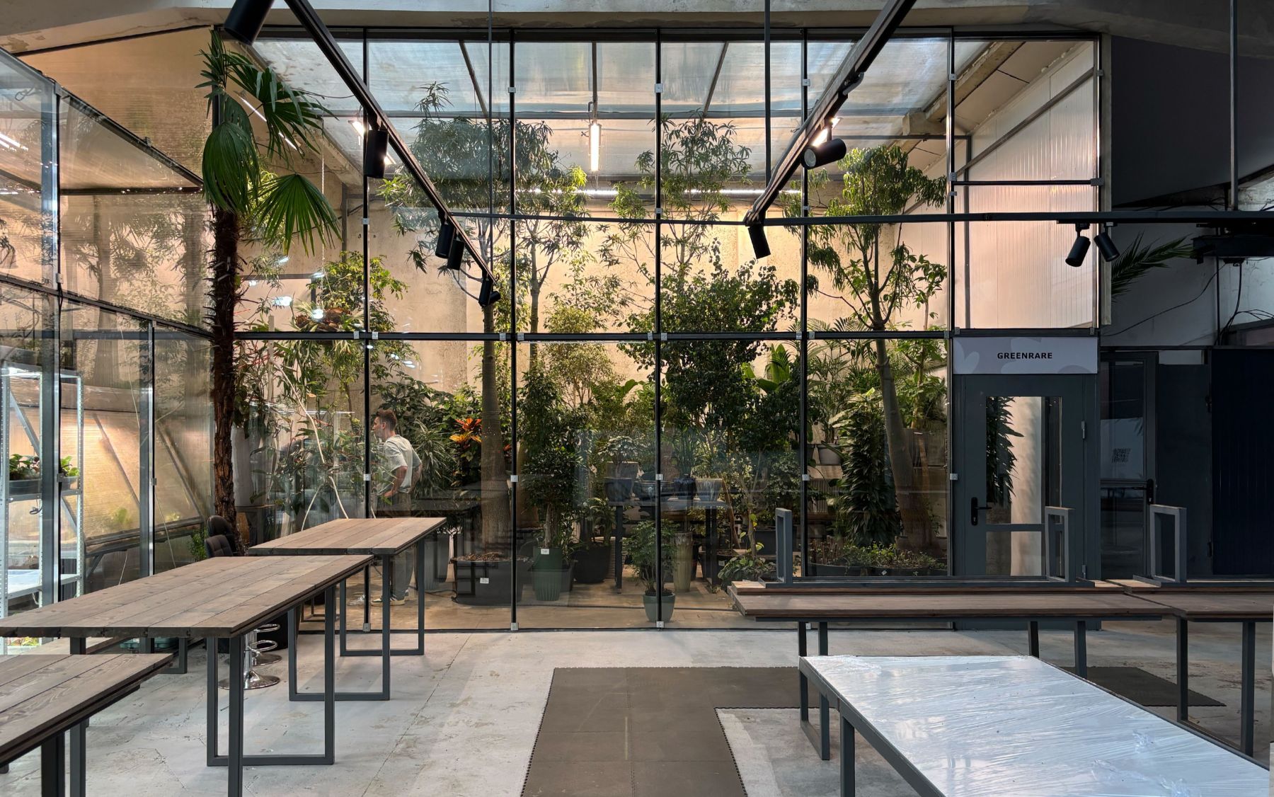 Индустриальные трубы, высокий потолок, длинные столы и море зелени. Самое фотогеничное пространство. Здесь можно сделать что угодно — от свадьбы до ярмарки. Атмосфера, в которой хочется творить и праздновать.