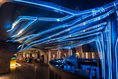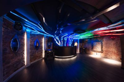 Этот «неоновый» лофт оборудован мощными Bluetooth-колонками, проектором и звуковой техникой, которые необходимые, чтобы устроить танцевально-музыкальные мероприятия. Яркое освещение и качественный звук создают идеальные условия для фото и видеосъемки.