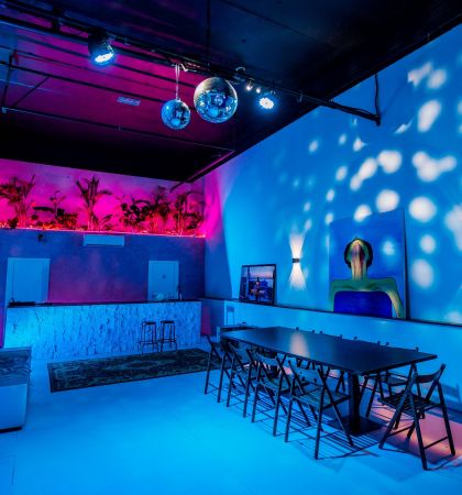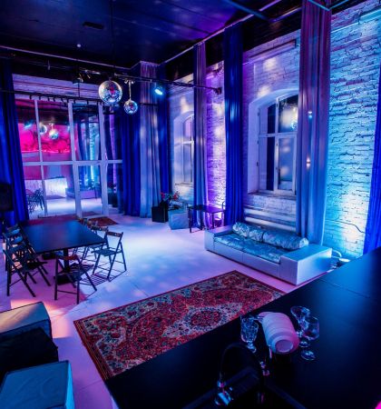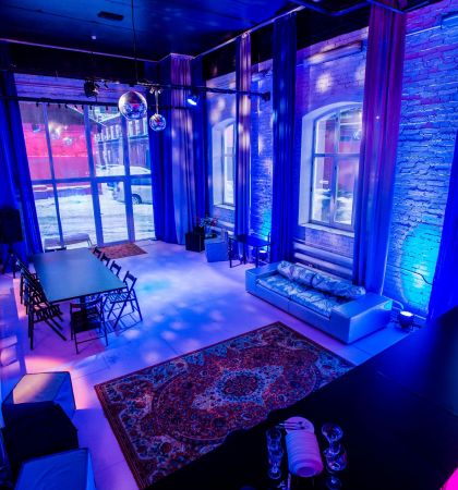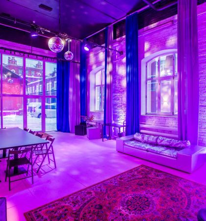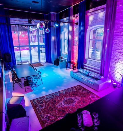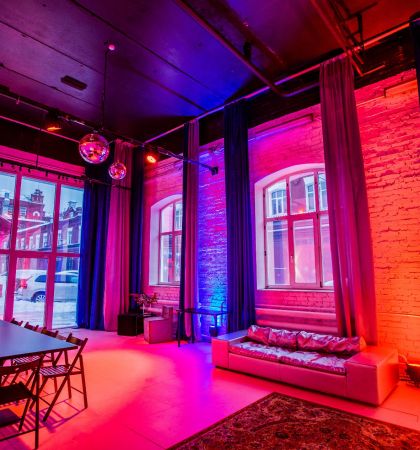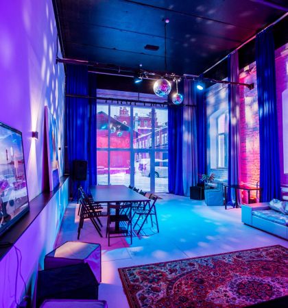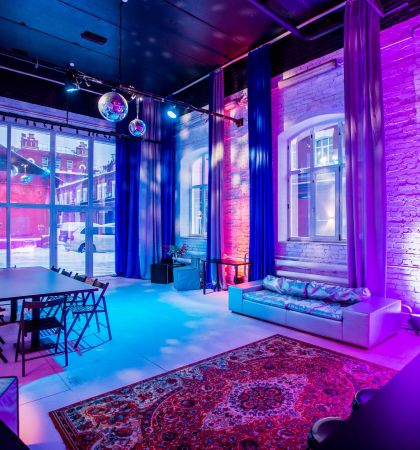 В клубном лофте с барной станцией можно шуметь в любое время дня и ночи, а еще приносить с собой еду и напитки. Организуйте здесь любое мероприятие и не беспокойтесь о технической части — неоновая подсветка, диско-шар, профессиональное музыкальное оборудование и проектор позволят провести все на высшем уровне.
