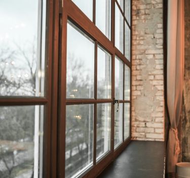 Очень стильный лофт с дизайнерской барной стойкой, с огромным окном 4 на 4 метра.