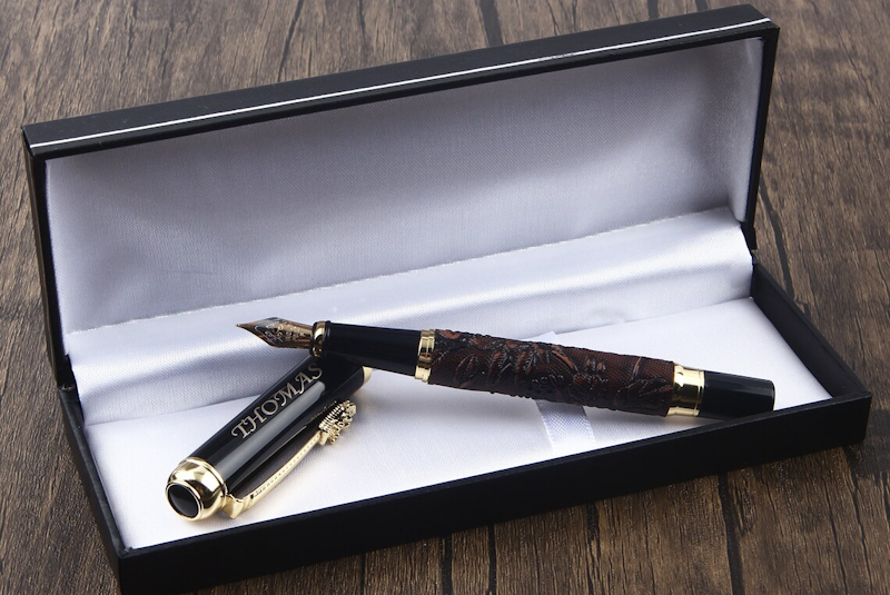 Такой вариант новогоднего подарка подойдет для делового человека. Именную гравировку можно дополнить пожеланием или короткой фразой.
