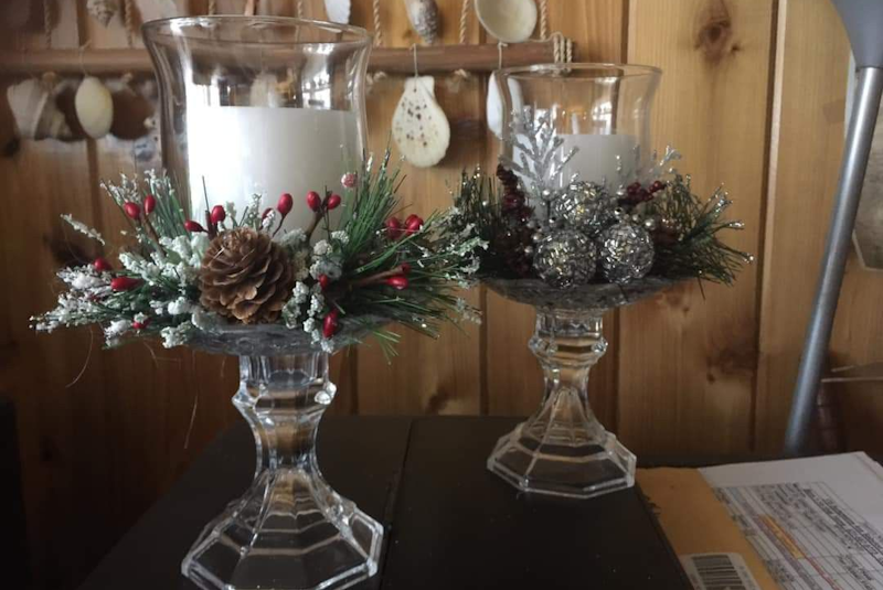 Для создания такого новогоднего презента понадобятся широкие бокалы, которые станут основой для подсвечника. Вам потребуется аккуратно обклеить бокалы еловыми веточками, а также любым другим декором. Внутрь поместите свечи, и ваш подарок готов.