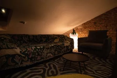 Атмосферный лофт расположился в мансарде одного из домов на Таганке. По вечерам площадка погружается в полумрак: приглушенный свет хрустальных люстр поможет создать атмосферу для самой таинственной ночи года. Мягкие диваны, уютные кресла и кальяны располагают к расслабленному вечеру в кругу друзей.