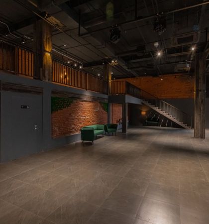 В этом стильном лофте можно устроить мега-вечеринку на 130 человек. Контрастное оформление площадки можно дополнить зловещим декором и теми самыми праздничными тыквами. Трехуровневое пространство легко зонировать: здесь есть место и для танцпола, и для lounge-зоны, и для веселых посиделок с друзьями у барной стойки. Веселиться до утра никто не запретит: лофт находится в отдельно стоящем здании, поэтому вы сможете смело продолжать вечеринку и после 23.00.