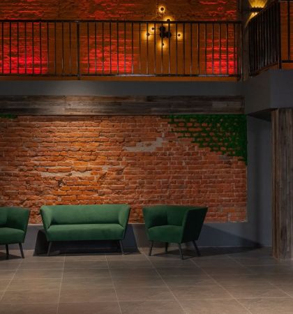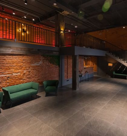 Расположение на территории бывшего завода, действующий камин и дизайнерская мебель задают пространству атмосферу таинственности. Если декорировать помещение в готическом стиле, никто из гостей не поверит, что находится в самом центре Москвы.
