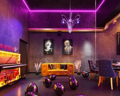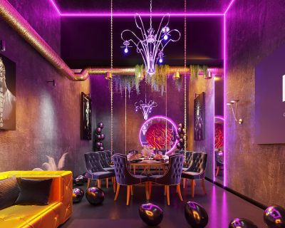 Город засыпает, в лофте загораются неоновые огни. Мистическая подсветка дополняет атмосферу самой таинственной ночи года, а профессиональный качественный стерео-звук наполняет лофт вашей любимой музыкой. Здесь можно танцевать всю ночь до рассвета, играть в Play Station 4 на мягких диванах в зоне чилл-аут, курить кальян и пить коктейли у барной стойки. Приятный бонус для гостей — еду и любые напитки разрешено приносить с собой без оплаты пробкового сбора.