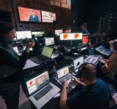 Мы считаем, что подавляющее количество ивентов станут «гибридными» — соединением «оффлайна» и «онлайна». В залах по-прежнему будут сидеть зрители, но такими же полноценными участниками станут и те, кто присутствует «онлайн». Подчеркнем, что именно участниками, а не просто зрителями трансляции — у них будет возможность задать вопрос, пообщаться с любым человеком из зала и поучаствовать в интерактивах.