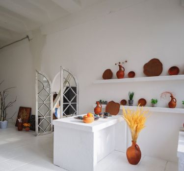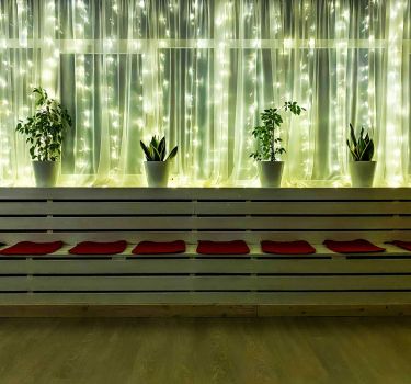 Атмосфера в этом лофте располагает к разговорам о здоровом образе жизни и правильном питании. Комнаты, обставленные диванчиками и стеллажами, украшены живыми растениями и экологичными предметами интерьера. Также в студии есть место для организации лекции на тему ЗОЖ или проведения мастер-класса по приготовлению низкокалорийных блюд.