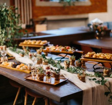 Чтобы на вечеринке было не только красиво, но и вкусно, не забудьте про угощения: любую еду и напитки можно принести с собой или заказать в службе доставки.
