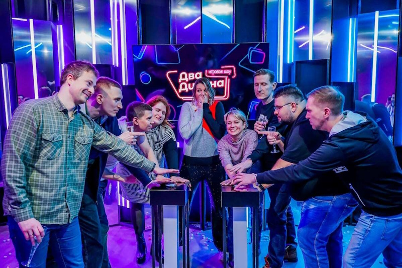 Во время игры вы почувствуете себя как в тех самых передачах на ТВ: будет и большой экран, и мощная акустика, и яркая картинка со световыми эффектами. Ведущий ничем не уступает Паше Воле: харизма, юмор, умение зажечь огонь в глазах даже у тех, кто на корпоративах привык занимать роль стороннего наблюдателя.