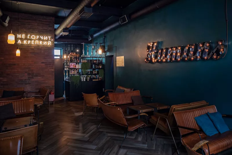 - Атмосфера: Брутальная, закрытая, «для своих». Круглые кирпичные стены, приглушенный свет, мощная энергетика.