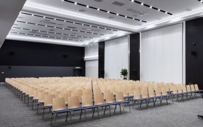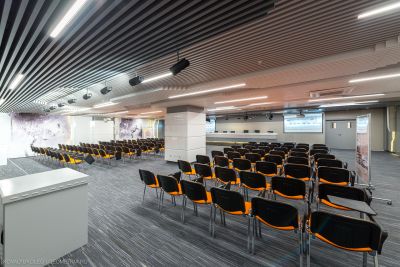 Главное преимущество — гибкость. В распоряжении гостей большой конференц-зал и несколько небольших аудиторий — это позволяет одновременно проводить несколько встреч или организовать масштабное событие на 1000 человек.