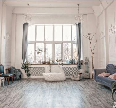 Для проведения фотосессии подойдет этот небольшой светлый зал рядом с метро Свиблово.
