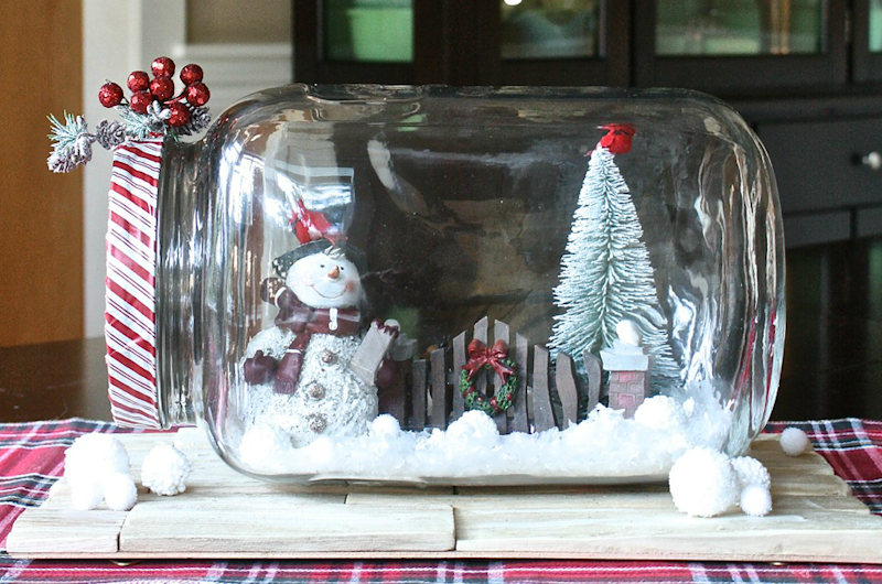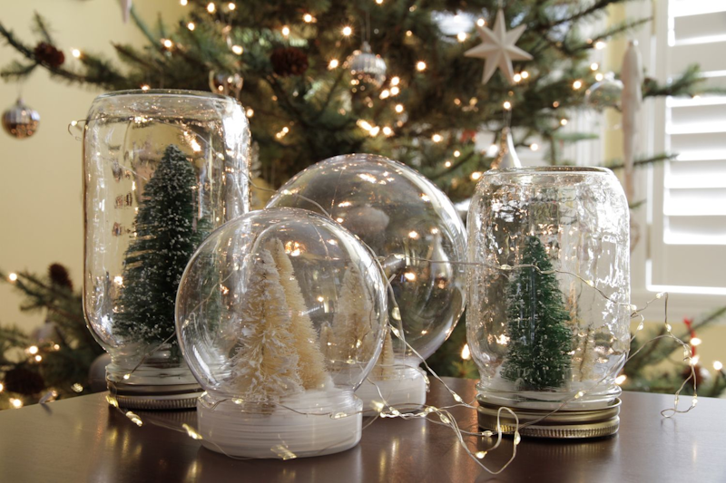 Что понадобится: Красивые стеклянные банки с крышками, пищевая сода, клей ПВА, блестки светло-голубого и серебряного цветов, маленькие фигурки Деда Мороза, Снегурочки или снеговиков, искусственный снег (можно заменить мелкой цветной солью из магазина для хобби).
