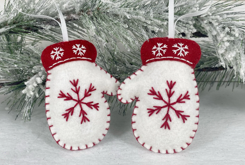 Декоративные варежки из фетра для рождественского подарка