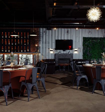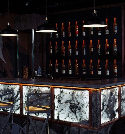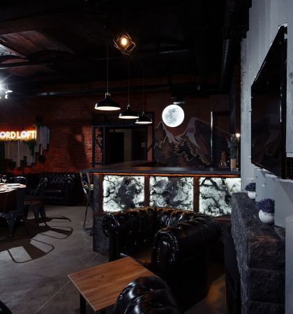 В центре зала — барная стойка с множеством вин с разных концов света. Вы можете заказать алкоголь здесь или принести с собой — в лофте это не запрещается. Приглушенный свет, удобные кожаные диваны и уютная обстановка располагают к расслабленному вечеру.