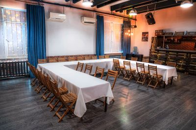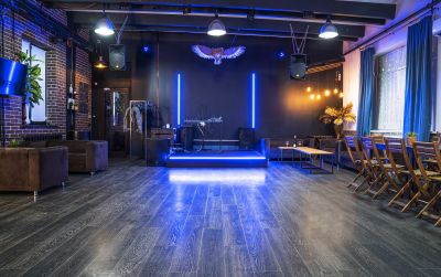Вместительный лофт, в котором можно устроить масштабное мероприятие с сотней гостей! Здесь есть все необходимое для пижамной вечеринки: кровать, множество диванов и диванчиков, подушки, пледы, неяркое освещение и пастельные цвета. Кроме того, здесь есть возможность организовать мини-кинотеатр, используя проектор и звуковое оборудование.