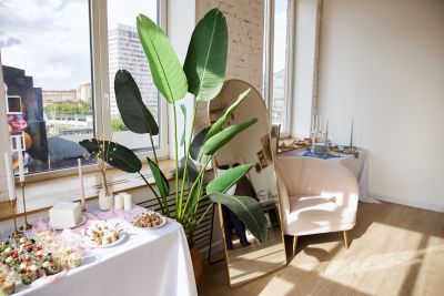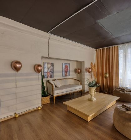 Светлая и уютная площадка, оформленная в скандинавском стиле. Лофт идеально подойдет для пижамной вечеринки, ведь здесь есть кровать! Кроме того, стены площадки украшены разнообразными предметами декора — так что красивые фото на таком фоне вам обеспечены. Лофт вмещает до 40 гостей.