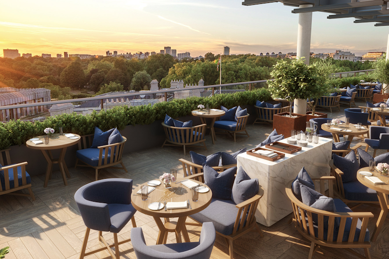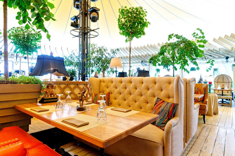 Легендарное заведение Андрея Деллоса открыло отдельное пространство на крыше основного ресторана: летом работает компактная терраса, которая вмещает около 20 человек. С неё открывается вид на Пушкинскую площадь и Тверской бульвар. Терраса окружена зеленью и цветами, а в случае дождя гостей защищают зонты.