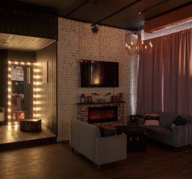 В этой атмосферной студии вы найдете множество локаций для фотосета: уютную антресоль с библиотекой, имитацию кухни, зону с кроватью и усиленным освещением. Отличный вариант для съемок в жанре love-story или семейной фотосессии в интерьерах с северной эстетикой.