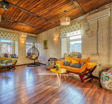 Еще один лофт, напоминающий террасу загородного дома, ждет вас недалеко от станции метро Алексеевская. В нем также есть некоторые элементы стиля прованс.