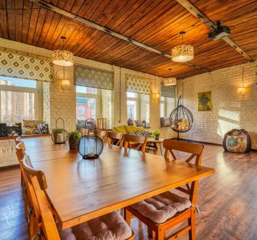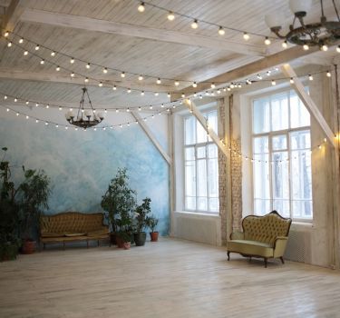 Эта площадка находится в окружении зелени в историческом центре Москвы. Благодаря большим окнам в помещении всегда много света. А в вечернее время создать атмосферу помогают светящиеся гирлянды, развешенные под потолком. Белоснежный зал подойдет для семейных и корпоративных праздников и свадебных торжеств.