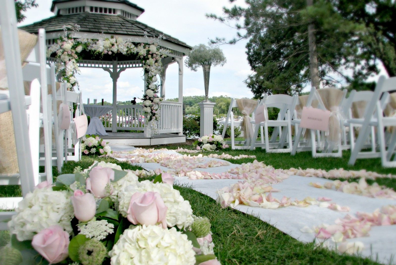 - Арка для церемонии. Разместите ее так, чтобы фоном служил самый живописный вид — озеро, лес, закатное небо.