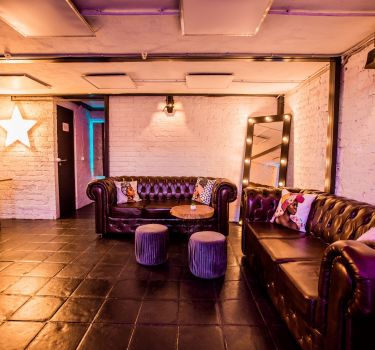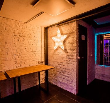 Стильное стрит-арт пространство с несколькими фотозонами, колоритным дизайном с неоновой подсветкой и уникальными экзотическими элементами отлично подойдет для создания атмосферы «тропической» вечеринки. Декоративные колонны, светильники-трубы и лаунж-зона с кожаными диванчиками и вазами с сухими букетами из прутьев — кажется, здесь есть все для того, чтобы почувствовать себя на Гавайях.