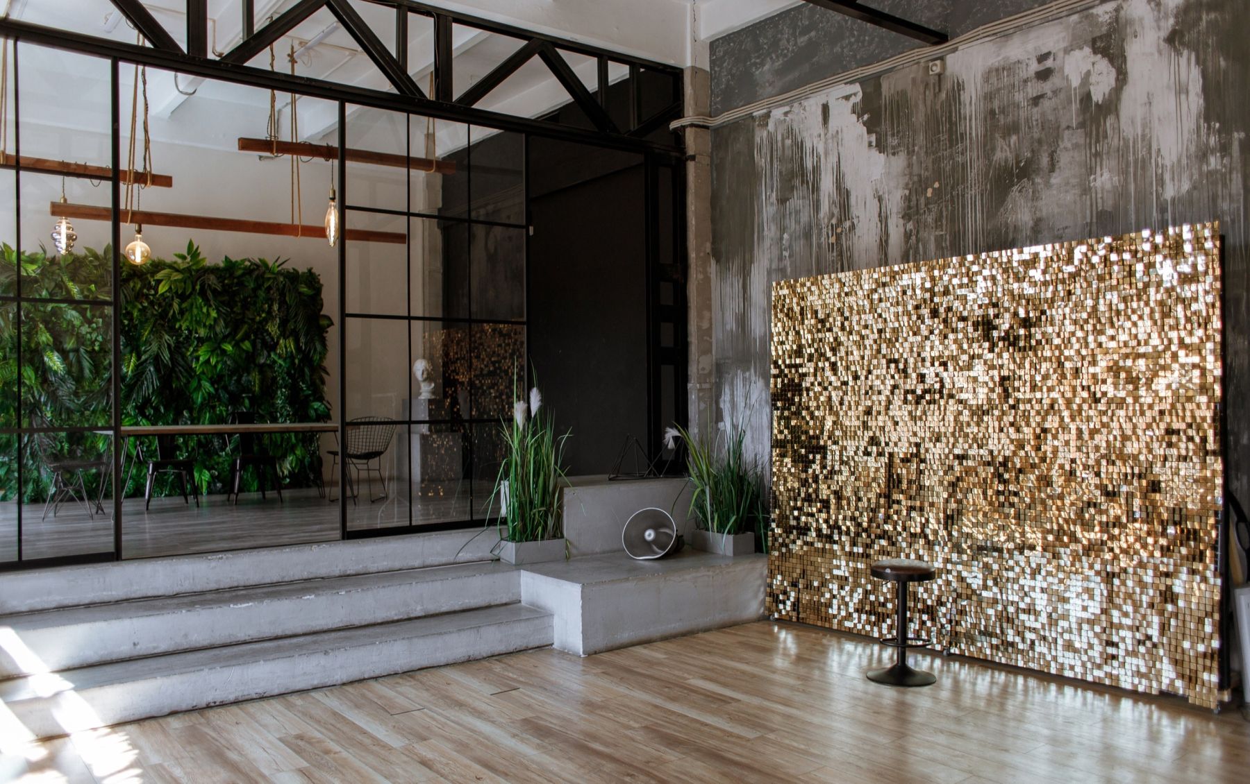 Стильный лофт, площадь 100 кв м. Расположен в самом центре Петроградки в историческом здании. Высота потолков 5,5 метров, 3 больших арочных окна, много дневного света. - Подиум - Большой стол со стульями Петроградский район Мы предоставляем площадку для проведения ваших мероприятий: корпоративы, дни рождения, мастер-классы, свадебные церемонии и фуршеты, девичники, киновечера и многое другое) Стильный просторный зал, 3 кресла, большой диван, передвижной золотой фон для красивых фотографий. В зале имеется подиум с отдельная зоной для фуршета. На подиуме дизайнерский передвижной фон Дополнительно обязательно оплачивается организация и уборка 1500 руб.